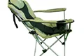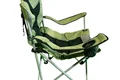 دستههای صندلی بهصورت آزاد و منعطف و از جنس پارچهای نرم و راحت ساخته شدهاند و دستها و آرنجها بهصورت بسیار راحتی بر روی آن قرار میگیرند. ارتفاع دسته های صندلی با استفاده از یک حلقه پلاستیکی که در قسمت عقب دسته قرار گرفته است، قابل تنظیم است و می توان بسته به نیاز دسته را در موقعیت مناسب گذاشت. بر روی دستهی راست صندلی کمپینگ هنگفنگ یک جا لیوانی مخصوص با عایق حرارتی تعبیه شده است که برای نوشیدنیهای سرد و گرم مناسب است. کل قسمتهای صندلی به دلیل استفاده از پرکنندههای فومی نرم است و جنس رویه آن بسیار نرم و راحت است و بههیچوجه پوست را اذیت نمیکند. همچنین در قسمت فوقانی پشتی این صندلی کمپینگ یک جیب زیپدار قرار دارد که با گذاشتن کاور صندلی یا لباس در داخل آن، علاوه بر اینکه از گم شدن کاور جلوگیری میکند، یک بالش نرم برای قرارگیری سر بر روی آن درست میشود که میتوان ساعتها بر روی آن استراحت نمود و حتی به خواب رفت. صندلی سفری هنگفنگ بسیار جادار است و با قابلیت تحمل وزن تا 130 کیلوگرم همه افراد بهراحتی میتوانند بر روی آن استراحت کنند. از ویژگیهای منحصربهفرد صندلی کمپینگ هنگفنگ سهحالته بودن پشتی آن است و میتوان بسته به نیاز شیب تکیهگاه آن را در سه حالت مختلف تنظیم نمود.