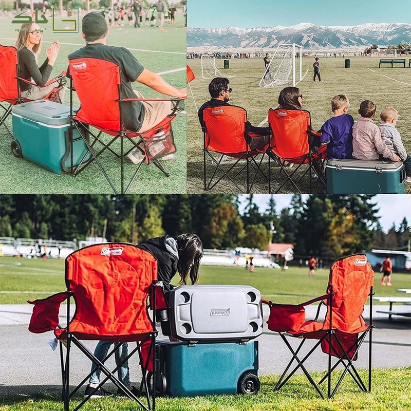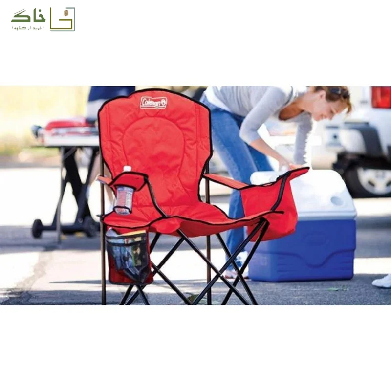 صندلی سفری کلمن کولر دار مدل Cooler Quad محصولی کاربردی از برند معتبر «کلمن» (Coleman) به هنگام پیک نیک، کمپینگ، سفرهای آفرودی، مسافرت های بین شهری و... می باشد. با صندلی کلمن Cooler Quad می توان نوشیدنی ها را در محل کمپ، هنگام باربیکیو (BBQ) یا پیک نیک خنک نوشید. کول باکس زیپی تعبیه شده در زیردسته صندلی کلمن تا چهار قوطی نوشابه را در خود جای می دهد و به محض خالی شدن نوشیدنی موجود در جا لیوانی صندلی، دسترسی آسان به یک نوشیدنی سرد را فراهم می کند. به هنگام استراحت روی صندلی کلمن کولر کواد، در حالی که می توان نوشیدنی مورد علاقه خود را میل کرد، به لطف پدهای فومی درون نشیمن گاه و تکیه گاه صندلی، احساس آرامش بیشتری را می توان تجربه کرد. در صورت تمایل به آزاد بودن دست ها هنگام نشستن روی صندلی کلمن، جیب های جانبی به خوبی برای گذاشتن گوشی موبایل، کتاب، مجله یا تنقلات مناسب است. هنگامی که تفریح تمام می شود، صندلی تاشو کلمن به راحتی جمع و در یک کیف حمل جای می گیرد تا حمل و نقل و نگهداری آن آسان باشد. این صندلی در رنگ های دیگری (آبی، مشکی، خاکستری) نیز عرضه شده است.