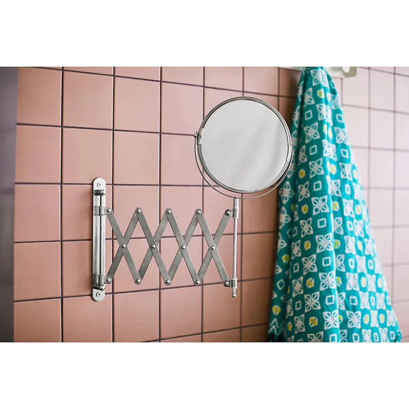 آینه استیل ایکیا مدل FRACK کد 38006200 محصولی از برند با کیفیت و معتبر «ایکیا» (IKEA) است. یک سمت آینه FRACK دارای قاب آینه با قابلیت بزرگ نمایی 2.5 برابری است. این آینه به صورت ریلی یا آکاردئونی باز و بسته می شود و در حالت جمع شده فضای زیادی را اشغال نمی کند. آینه دیواری FRACK برای استفاده در جاهایی با رطوبت بالا مانند حمام و دستشویی مناسب است زیرا جنس آن از استیل ضد آب است و در برابر آب مقاوم است و زنگ نمی زند. آینه FRACK برای استفاده در حمام و سرویس بهداشتی تست شده و تایید شده است.
