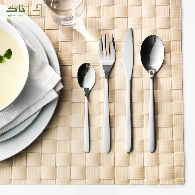 سرویس قاشق و چنگال 24 تکه ایکیا مدل FORNUFT کد 70014999 محصولی از برند با کیفیت و معتبر «ایکیا» (IKEA) است. بست قاشق و چنگال 24 تکه FORNUFT با طرحی ساده اما شیک طعم بیشتری را به چیدمان میز می بخشد و در نهایت غذا خوردن را لذت بخش تر می کند. ست قاشق و چنگال FORNUFT هم رای مراسم و مناسبت های خاص و هم برای استفاده هر روزه مناسب است؛ این سرویس قاشق و چنگال ایکیا از جنس استیل ساخته شده است که بسیار بادوام است و به راحتی تمیز می شود. سرویس قاشق و چنگال 24 تکه FORNUFT شامل 6 عدد چنگال، 6 عدد چاقو، 6 عدد قاشق و 6 عدد قاشق چای خوری است و قابلیت شستشو در ماشین ظرفشویی را داراست. ست قاشق و چنگال FORNUFT با طراحی شسته رفته و تمیز و شیک، با انواع مختلف چیدمان میز به خوبی هماهنگ می شود.