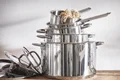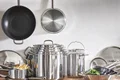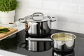 قابلمه ایکیا مدل +365 IKEA کد 00484229 حجم 1 لیتر محصولی از برند با کیفیت و معتبر «ایکیا» (IKEA) است. این قابلمه یا دیگچه دسته بلند ایکیا دارای طراحی تمیز و ساده است و استفاده از آن آسان است. جنس استیل و کف پهن قابلمه +365 IKEA باعث گرم شدن سریع تر آن میشود و تنظیم دمای این قابلمه را بسته به نوع غذا، آسانتر می کند. قابلمه +365 IKEA روی همه انواع اجاق گاز از جمله اجاق صفحه ای القایی به خوبی کار می کند. دسته قابلمه از استیل است و طوری طراحی شده است که انتقال حرارت به آن، با کمترین میزان صورت گیرد. جنس استیل این قابلمه باعث می شود که بسیار با دوام باشد و به راحتی تمیز شود. کف پهن با لبه های خمیده، قابلمه +365 IKEA را برای استفاده در اجاق گاز و اجاق صفحه ای القایی کاملاً مناسب می کند. کف ضخیم این قابلمه ایکیا با یک لایه آلومینیوم بین دو لایه استیل تقویت شده است تا انتقال گرما به صورت یکنواخت و متعادل صورت گیرد و اینگونه احتمال سوختن و چسبیدن غذا کاهش می یابد. قابلمه ایکیا مدل +365 IKEA در ابعاد دیگری نیز عرضه شده است.