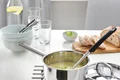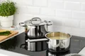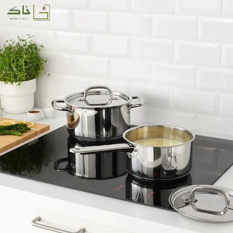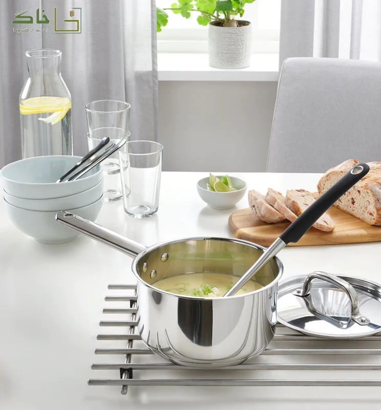 قابلمه ایکیا مدل +365 IKEA کد 40484232 حجم 2 لیتر محصولی از برند با کیفیت و معتبر «ایکیا» (IKEA) است. این قابلمه یا دیگچه دسته بلند ایکیا دارای طراحی تمیز و ساده است و استفاده از آن آسان است. جنس استیل و کف پهن قابلمه +365 IKEA باعث گرم شدن سریع تر آن میشود و تنظیم دمای این قابلمه را بسته به نوع غذا، آسانتر می کند. قابلمه +365 IKEA روی همه انواع اجاق گاز از جمله اجاق صفحه ای القایی به خوبی کار می کند. دسته قابلمه از استیل است و طوری طراحی شده است که انتقال حرارت به آن، با کمترین میزان صورت گیرد. جنس استیل این قابلمه باعث می شود که بسیار با دوام باشد و به راحتی تمیز شود. کف پهن با لبه های خمیده، قابلمه +365 IKEA را برای استفاده در اجاق گاز و اجاق صفحه ای القایی کاملاً مناسب می کند. کف ضخیم این قابلمه ایکیا با یک لایه آلومینیوم بین دو لایه استیل تقویت شده است تا انتقال گرما به صورت یکنواخت و متعادل صورت گیرد و اینگونه احتمال سوختن و چسبیدن غذا کاهش می یابد. قابلمه ایکیا مدل +365 IKEA در ابعاد دیگری نیز عرضه شده است.