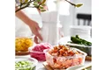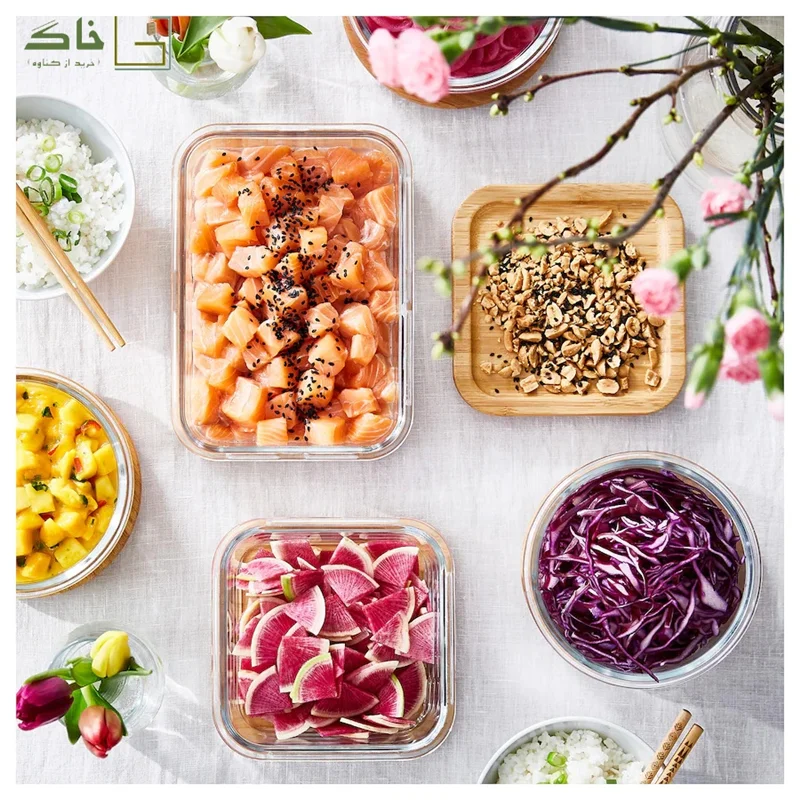 ظرف غذای مایکروویوی ایکیا مدل +365 IKEA کد 19269116حجم 0.6 لیتر محصولی از برند با کیفیت و معتبر «ایکیا» (IKEA) است. همین الان بخورید یا بگذارید برای بعد! ظرفش با ما، انتخابش با شما! نگهداری و گرم کردن مواد غذایی در ظرف غذای مایکروویوی +365 IKEA، با شیشه ضد حرارت و قابلیت گذاشتن در فر و مایکروویو، آسان است. متریال شیشه، بو یا تغییر رنگ را به خود جذب نمی کند و برای زمانی که می خواهید از غذاهای خانگی در کنار خانواده لذت ببرید، عالی است. ظرف غذای +365 IKEA دارای یک درب محکم است که غذا را تازه نگه می دارد و عطر و طعم را حفظ می کند. جنس درب +365 IKEA از بامبو است که ظاهری گرم و با طراوت ایجاد می کند. این ظرف غذای ایکیا از شیشه مخصوص فر ساخته شده است و می توان از آن هم به عنوان ظرف پخت و پز و هم ظرف سرو استفاده کرد و دیگر نیاز نیست غذای پخته شده را به ظرف دیگری برای سرو کردن منتقل کرد. شیشه شفاف +365 IKEA این امکان را می دهد تا به راحتی چیزی را که می خواهید، چه یخچال باشد یا کابینت یا هر جای دیگری، پیدا کنید. ظرف غذای مایکروویوی +365 IKEA در طرح ها و اندازه ها و اشکال مختلف عرضه شده است.
