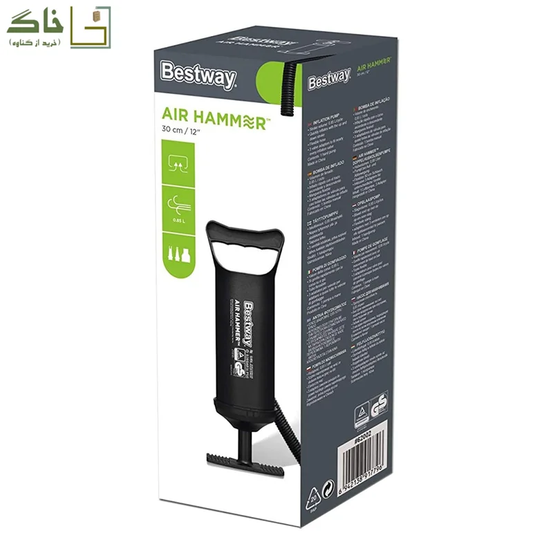 پمپ باد دستی بست وی مدل چکشی کد 62002 محصولی کاربردی از شرکت «بست وی» (Bestway) می باشد که برای باد کردن انواع محصولات بادی مانند تشک بادی، بالش بادی، قایق بادی، توپ ساحلی، مبل بادی، اسباب بازی های بادی کودکان، حلقه شنا، جلیقه شنا و سایر وسایل مربوط به تفریحات آبی و... کاربرد دارد. استفاده از پمپ دستی (چکشی) بست وی بسیار راحت و آسان است. این پمپ باد کوچک بست وی دارای 3 سری قابل تعویض است که با اکثر تجهیزات بادی سازگاری دارد. پمپ دستی بست وی فقط برای باد کردن وسایل کاربرد دارد و برای تخلیه هوای وسایل بادی قابل استفاده نمی باشد.
