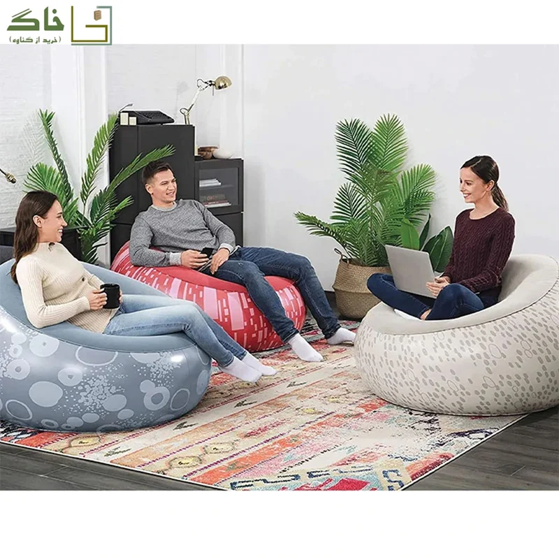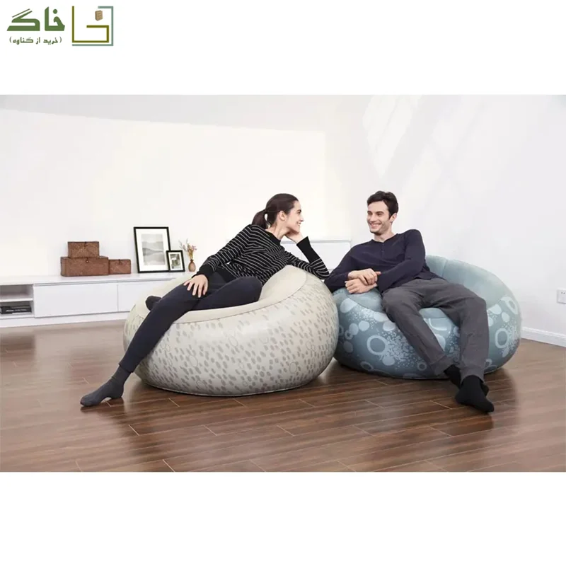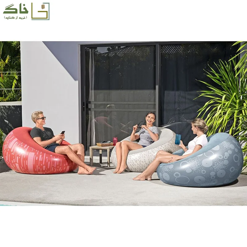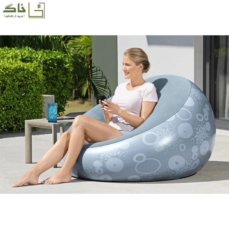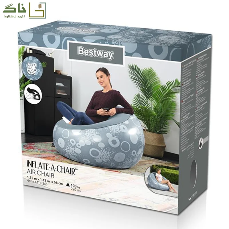 مبل بادی بست وی مدل اینفلیت اِ چیر کد 75052 رنگ طوسی محصولی جذاب و کاربردی است که توسط برند معتبر «بست وی» (Bestway) عرضه شده است. مبل بادی «اینفلیت اِ چیر» (Inflate-A-Chair) یک مبل بادی بسیار راحت است که می توان در فضای داخلی و یا در فضای باز مانند حیاط خانه یا باغ و یا در کنار استخر از آن استفاده نمود. باد کردن این مبل بادی بست وی فقط چند دقیقه طول می کشد و در صورت نیاز می توان به راحتی آن را جمع کرد و در کمد گذاشت. در این مبل بادی از تکنولوژی «کویل بیم» (Coil Beam) استفاده شده است که مبل را هنگام استفاده محکم و سرپا نگه می دارد و ثبات و استحکام خود را با استفاده مکرر حفظ می کند. طراحی ظاهری راحت و مدرن این مبل بادی بسیار جذاب است و با سه طرح و رنگ مختلف عرضه شده است.