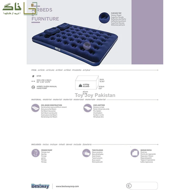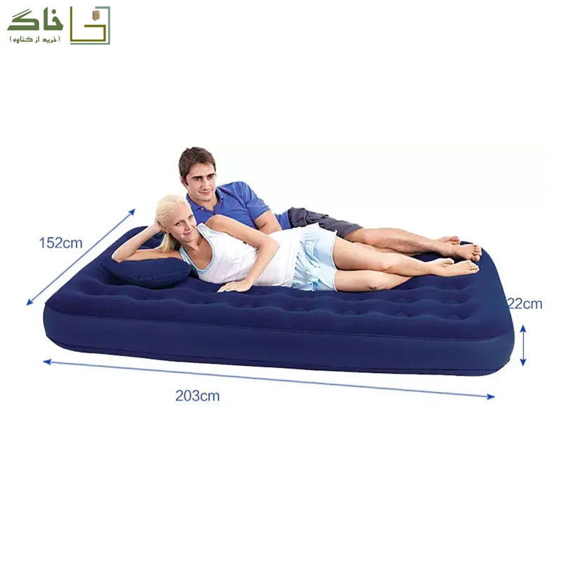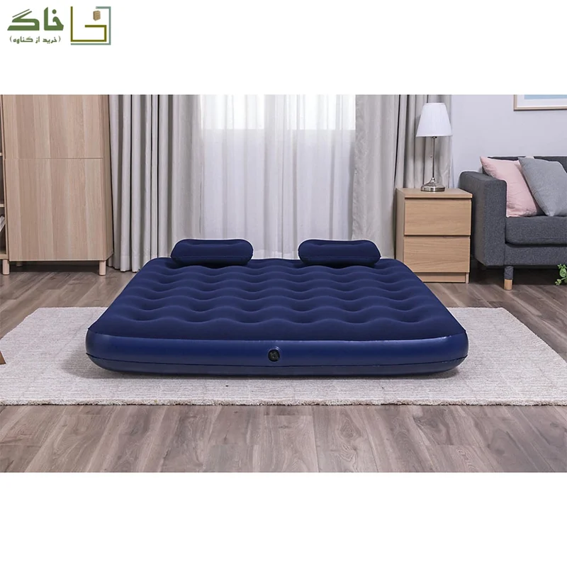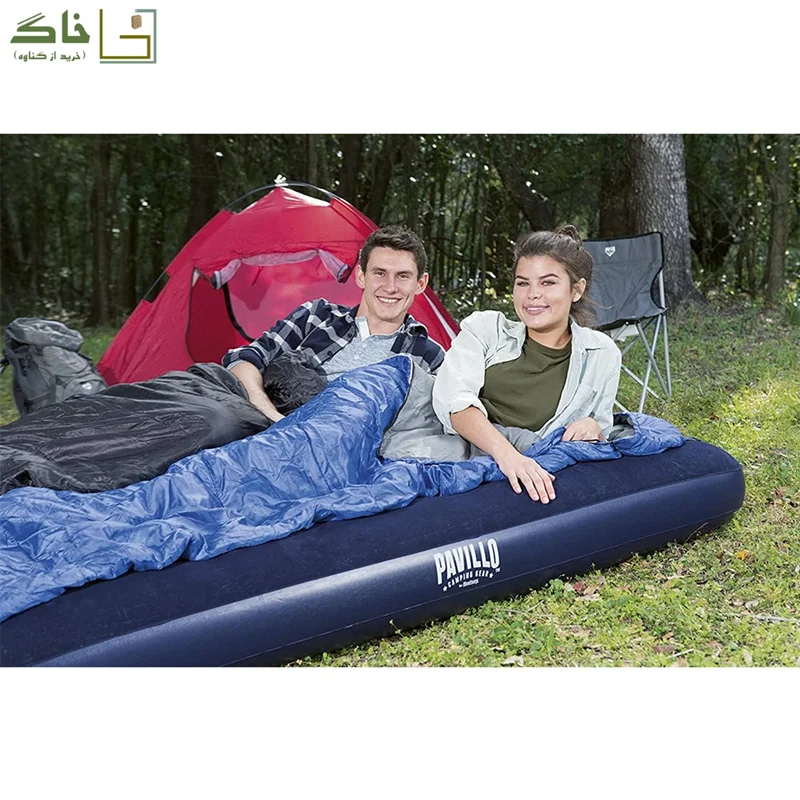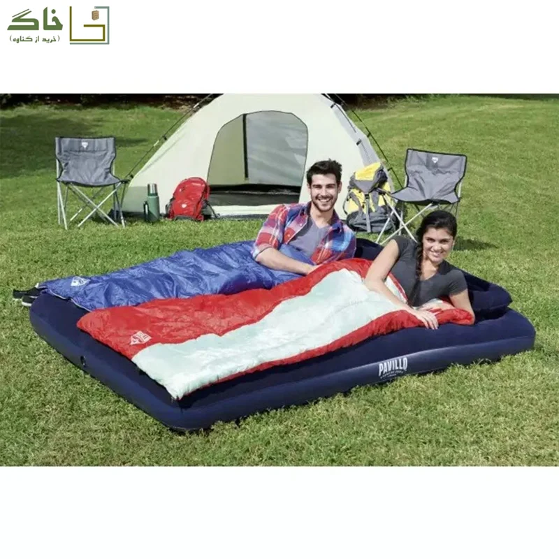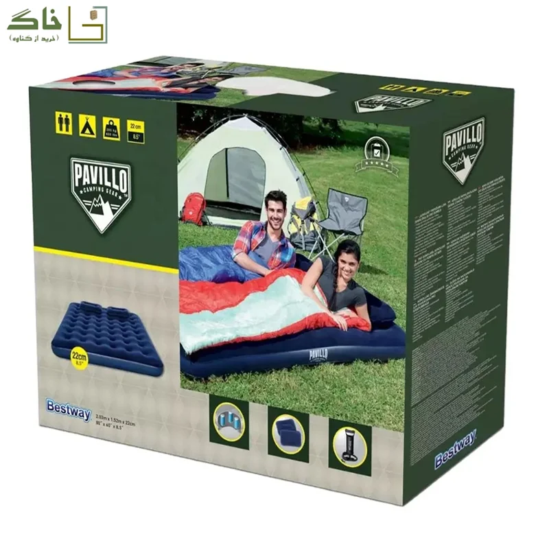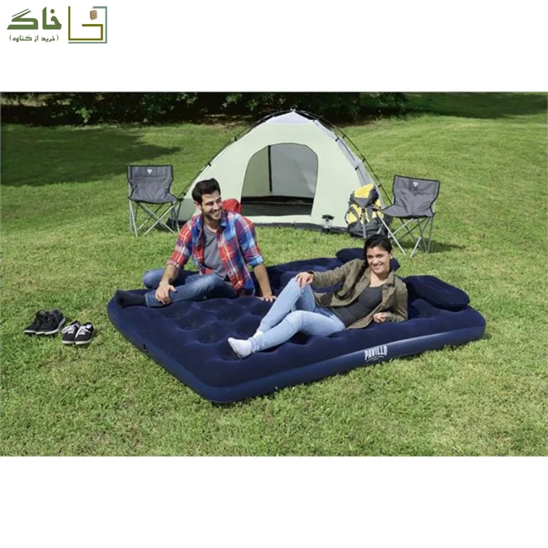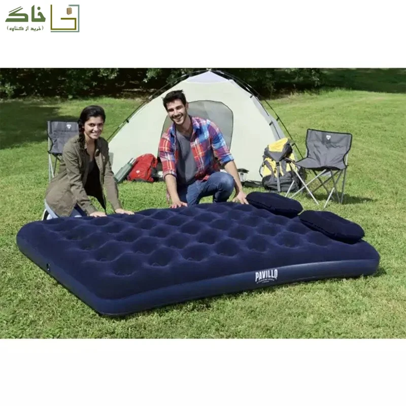 این کالا از حالت پلمپ خارج شده است و با تخفیف استثنایی عرضه می شود. (کالای نمونه) تشک بادی دو نفره پاویلو مدل کویین کد 67374 به همراه پمپ دستی و بالش بادی یک محصول کامل و کاربردی ارائه شده توسط شرکت «بست وی» (Bestway) است. بست وی محصولات کمپینگ خود را با برند «پاویلو» (Pavillo) به بازار عرضه می کند. تشک بادی دو نفره پاویلو مدل کویین (Queen) به همراه دو بالش بادی و یک پمپ دستی کوچک، مجموعه ای کامل و عالی برای سفر و کمپینگ و ماجراجویی در طبیعت محسوب می شود. البته از تشک بادی پاویلو علاوه بر فضای باز و خارج از منزل، در داخل خانه نیز در زمان هایی که برای مهمانان بخواهیم جای خوابی فراهم کنیم، می توان استفاده کرد. حسن این تشک دو نفره این است که پس از استفاده، به راحتی می توان دوباره آن را جمع نمود و در کمد گذاشت و اینگونه از نگهداری تشک های پنبه ای و فومی معمولی و اشغال بیش از حد فضای کمد بی نیاز شد. قابلیت تحمل وزن این تشک بادی 300 کیلوگرم و با عرض 152 سانتی متر برای استفاده ی دو نفر کاملا مناسب می باشد.