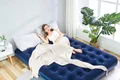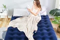 برای استفاده از این تشک بادی می توان از پمپ دستی یا برقی استفاده نمود. اما به همراه این تشک، یک پمپ دستی کوچک ارائه می شود که ما را از خرید پمپ به صورت جداگانه بی نیاز می سازد. میزان باد تشک نیز به اندازه ی دلخواه می باشد که می توان با فشار دادن تشک از میزان باد آن مطلع شد و نسبت به نیاز آن را تنظیم کرد. تخلیه هوای تشک با استفاده از دریچه تخلیه هوای مخصوصی که در آن تعبیه شده است، بسیار سریع و آسان انجام می شود و جمع آوری آن را در سریع ترین زمان مقدور می سازد.
