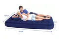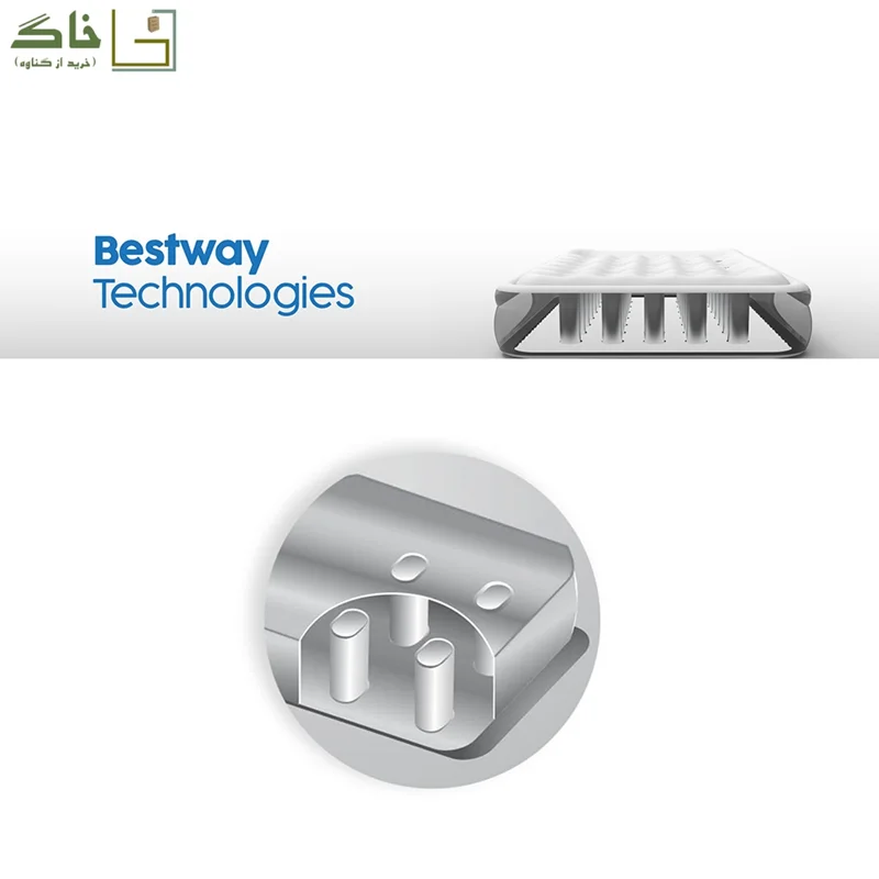 تشک بادی دو نفره پاویلو مدل کویین کد 67374 به همراه پمپ دستی و بالش بادی در طراحی خود از تکنولوژی «کویل بیم» (Coil Beam Construction) بهره می برد که مانند فنرهای پاکتی عمل می کند و بیشترین جذب و حمایت را از خمیدگی های بدن و ستون فقرات هنگام دراز کشیدن بر روی تشک ایجاد می کند. این ساختار در تشک پاویلو باعث می شود که شکل طبیعی بدن و ستون فقرات بر روی آن حفظ شود و بتوان خوابی آرام و راحت را بر روی آن تجربه کرد. ستون های نگهدارنده ی داخلی تشک بادی یک نفره پاویلو موجب افزایش استحکام و تحمل فشار بالا در این محصول شده است. بدنه ی تشک بادی دو نفره پاویلو از جنس پی وی سی دولایه است که در درازمدت و استفاده مداوم شکل خود را از دست نمی دهد و همیشه در فرم اولیه خود باقی می ماند. رویه این تشک بادی دو نفره پاویلو از جنس جیر می باشد و دارای برجستگی های موج مانند است که در کنار یکدیگر قرار گرفتهاند و در هنگام استراحت نه تنها گودی کمر را پر میکنند بلکه به کمک این برجستگیها و فرو رفتگیها گردش هوا انجام می گیرد و مانع تعریق بیش از حد بدن می شود. جنس کناره های تشک از پی وی سی طرح چرم می باشد که زیبایی خاصی به تشک می بخشد.